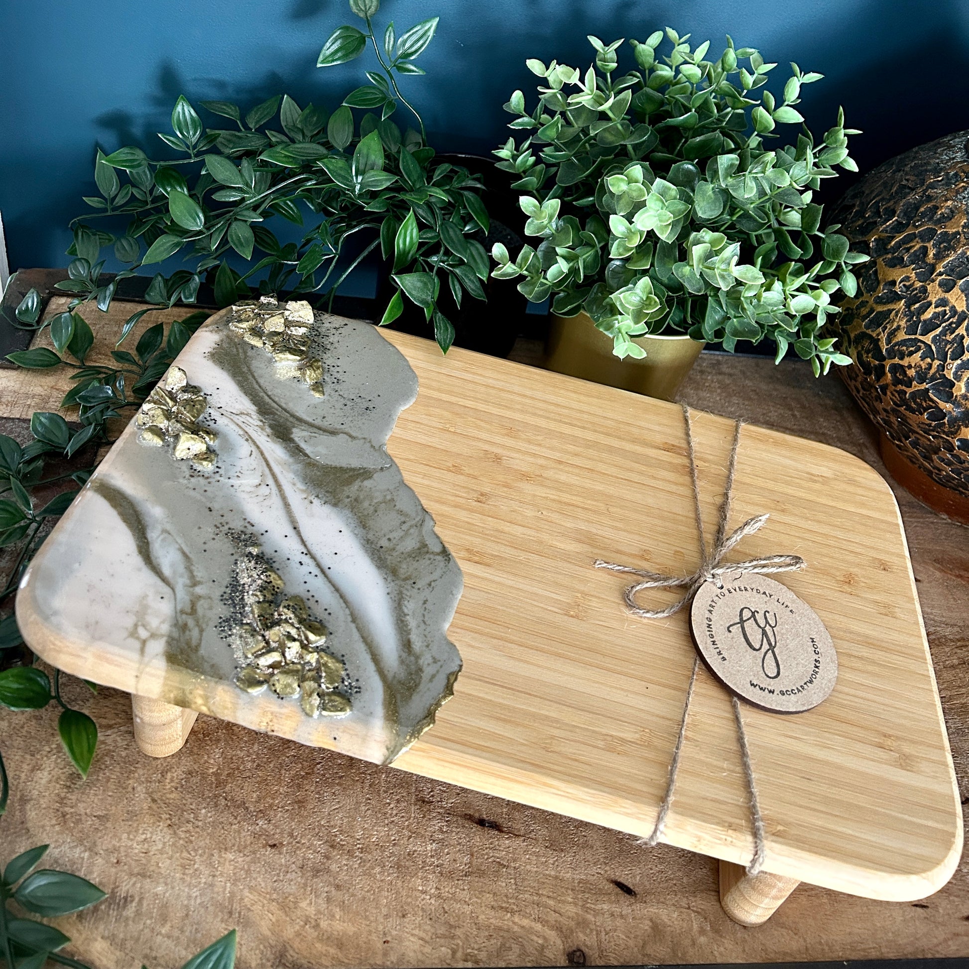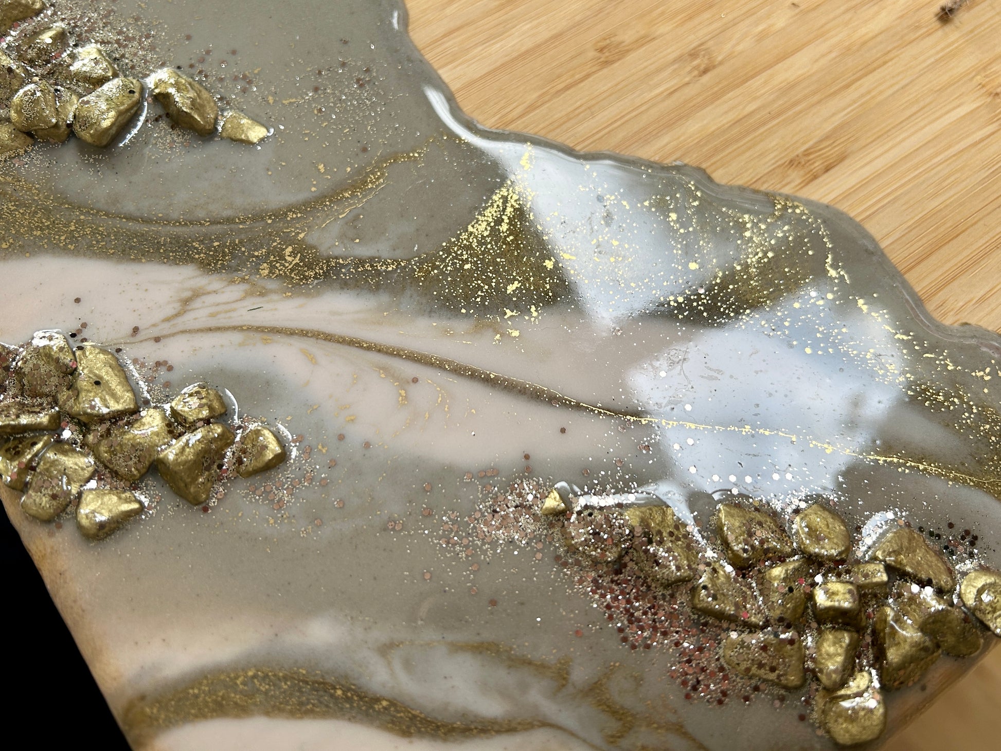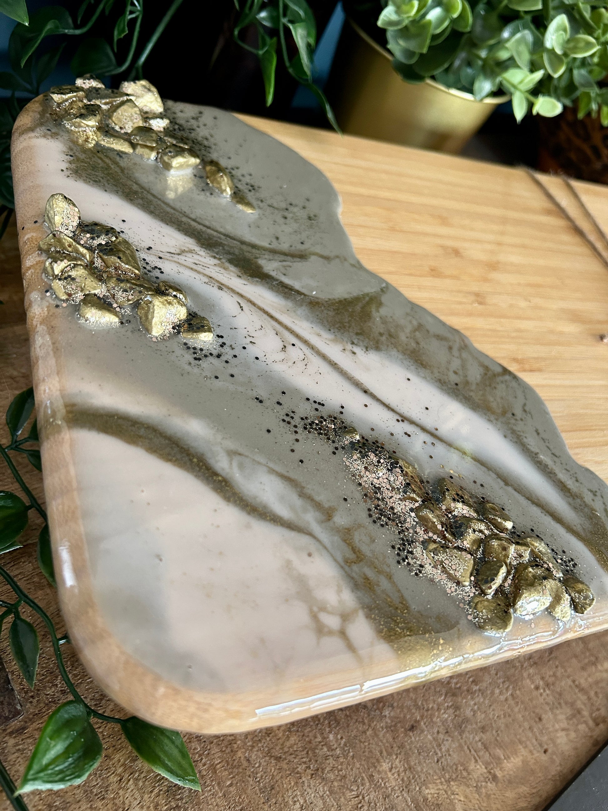 Resin Art Bamboo Raised Serving Board - Taupe, White and Gold