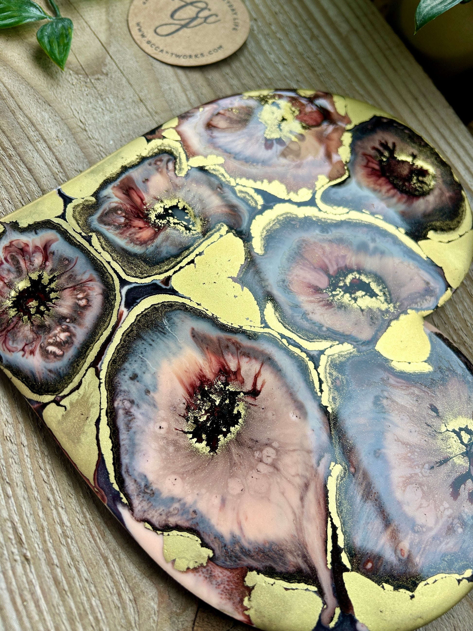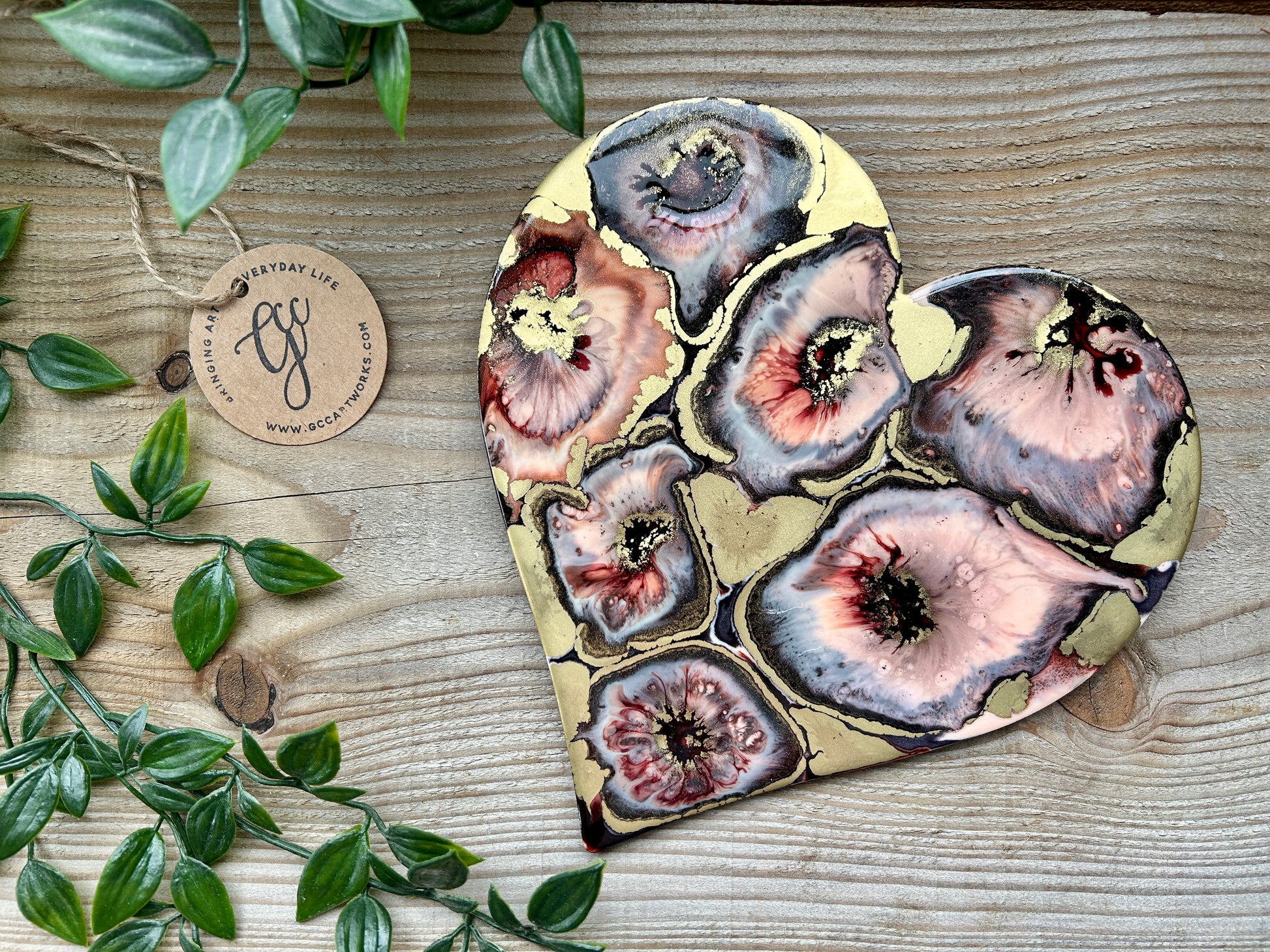 DUSTY ROSE - Resin and Alcohol Ink Original Hanging Heart Artwork