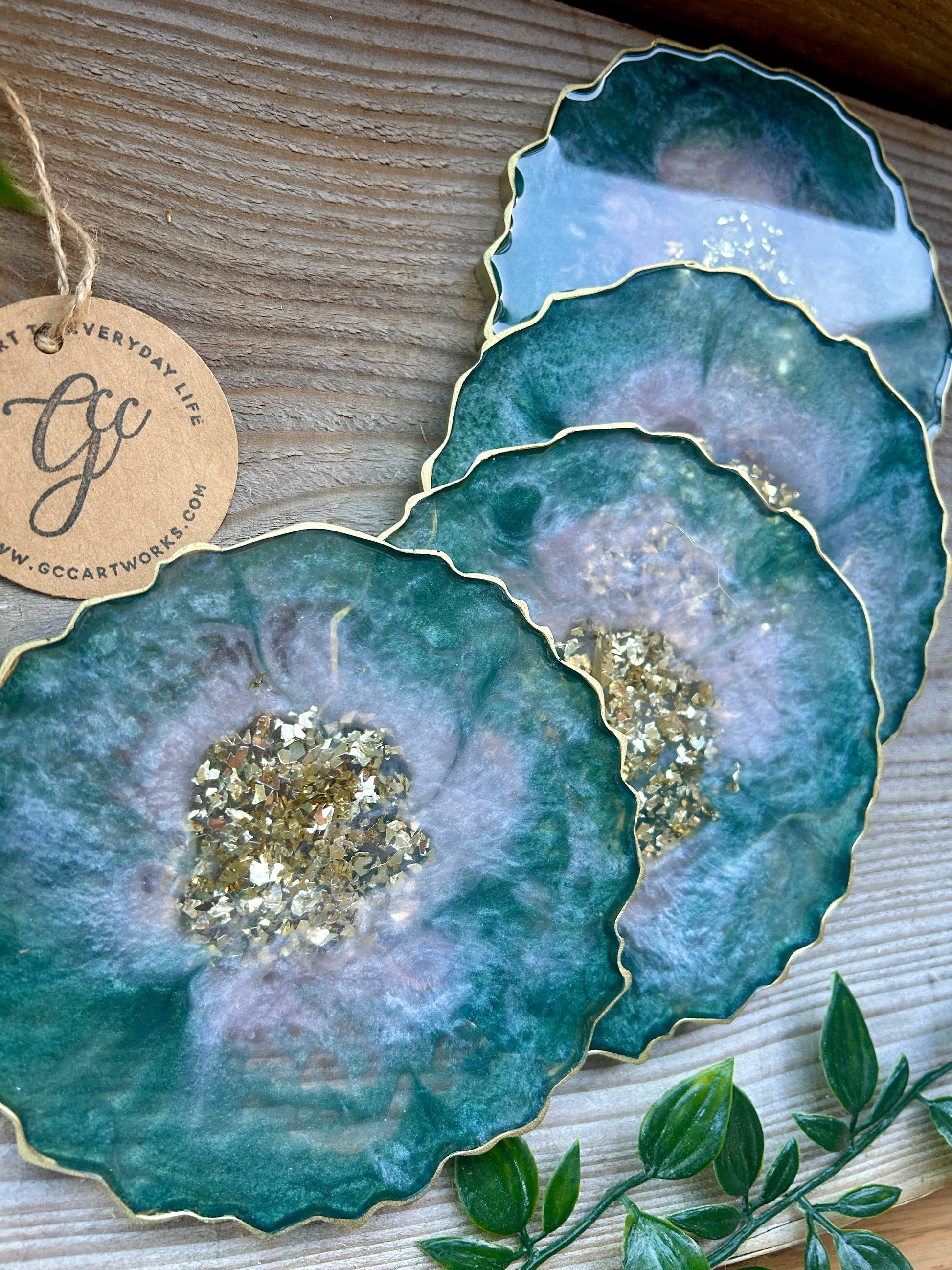 Geode Style Resin Art Coasters - Green, Pink and Gold