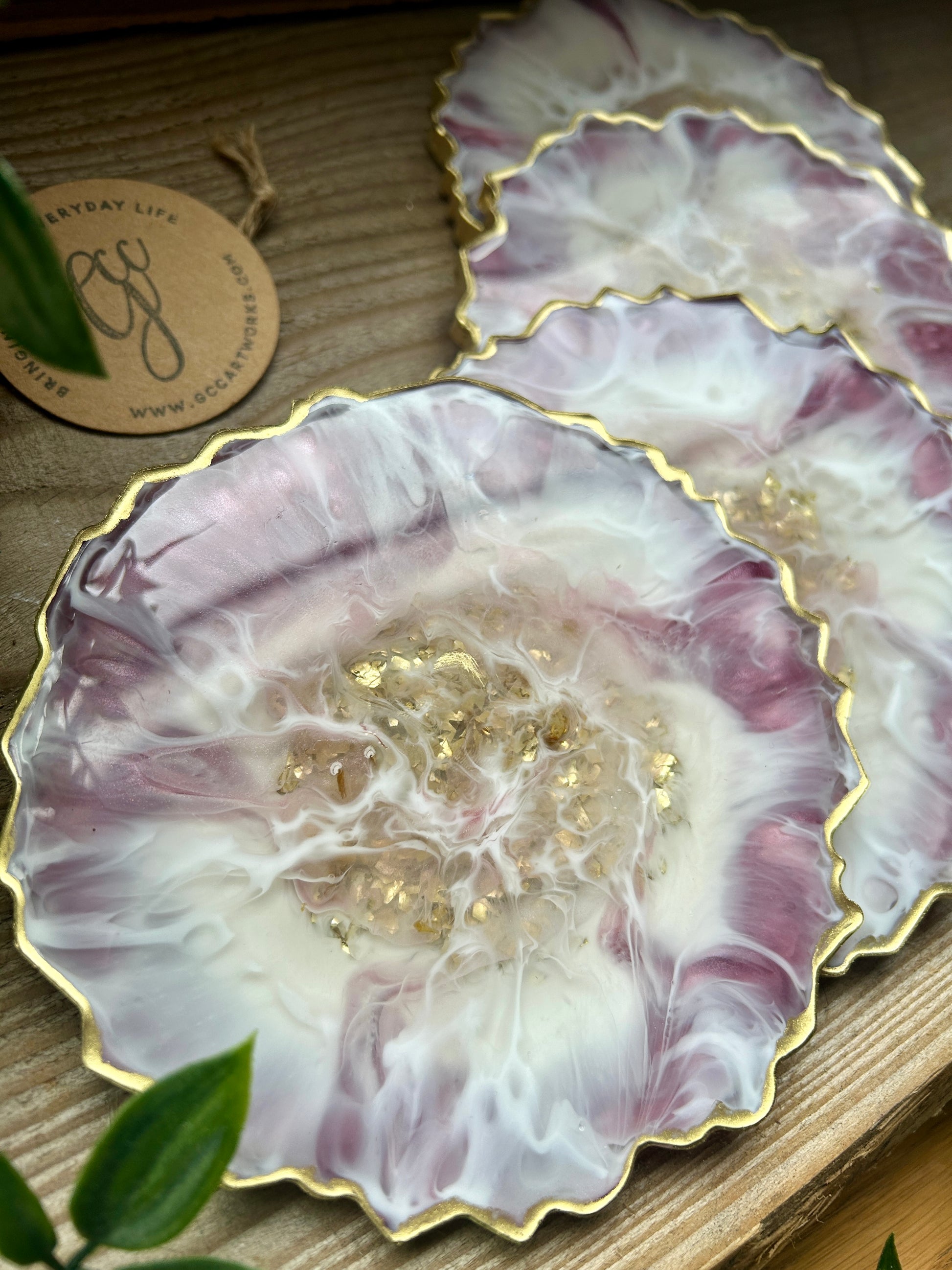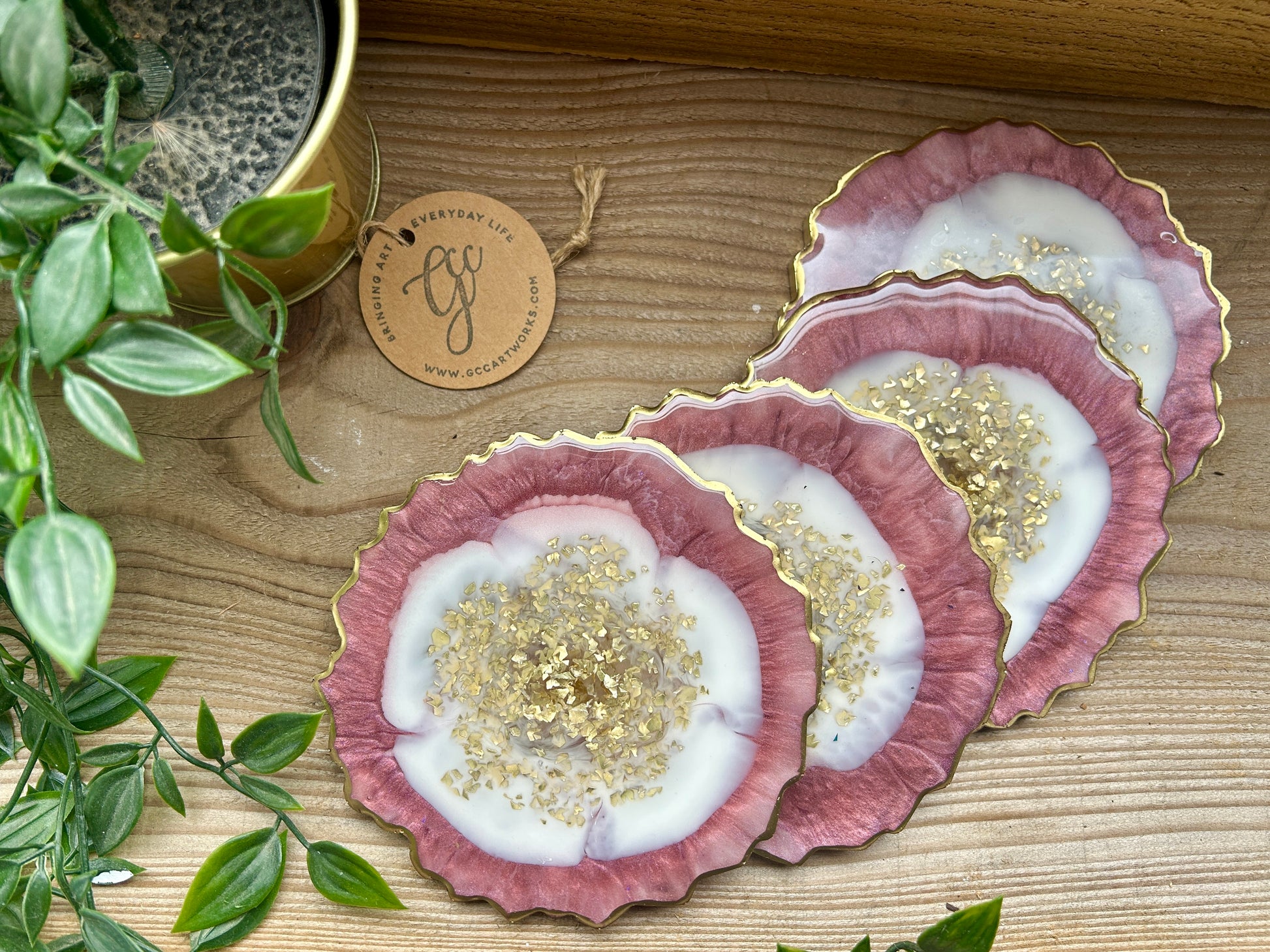 Geode Style Resin Art Coasters - Pink, White and Gold