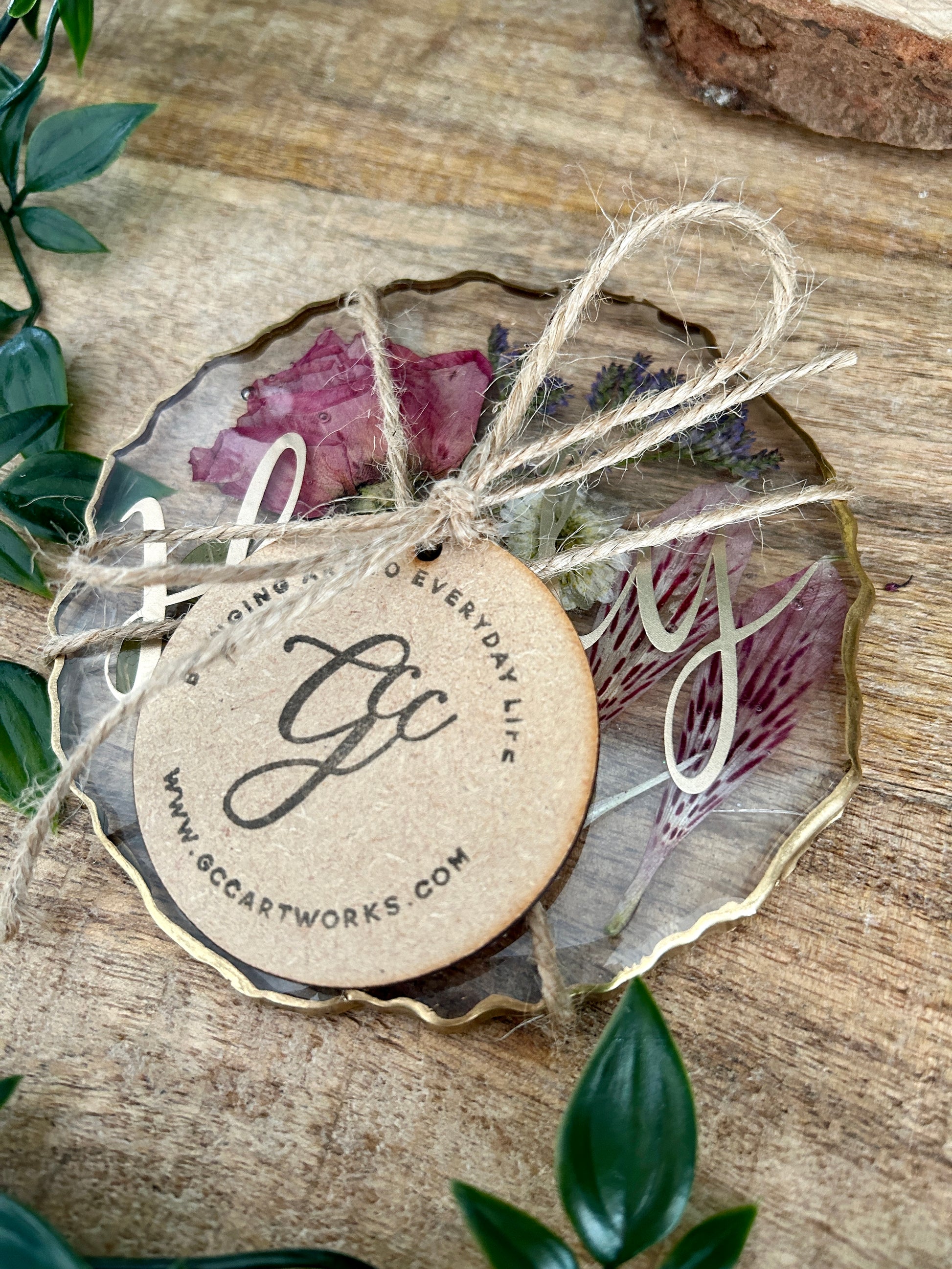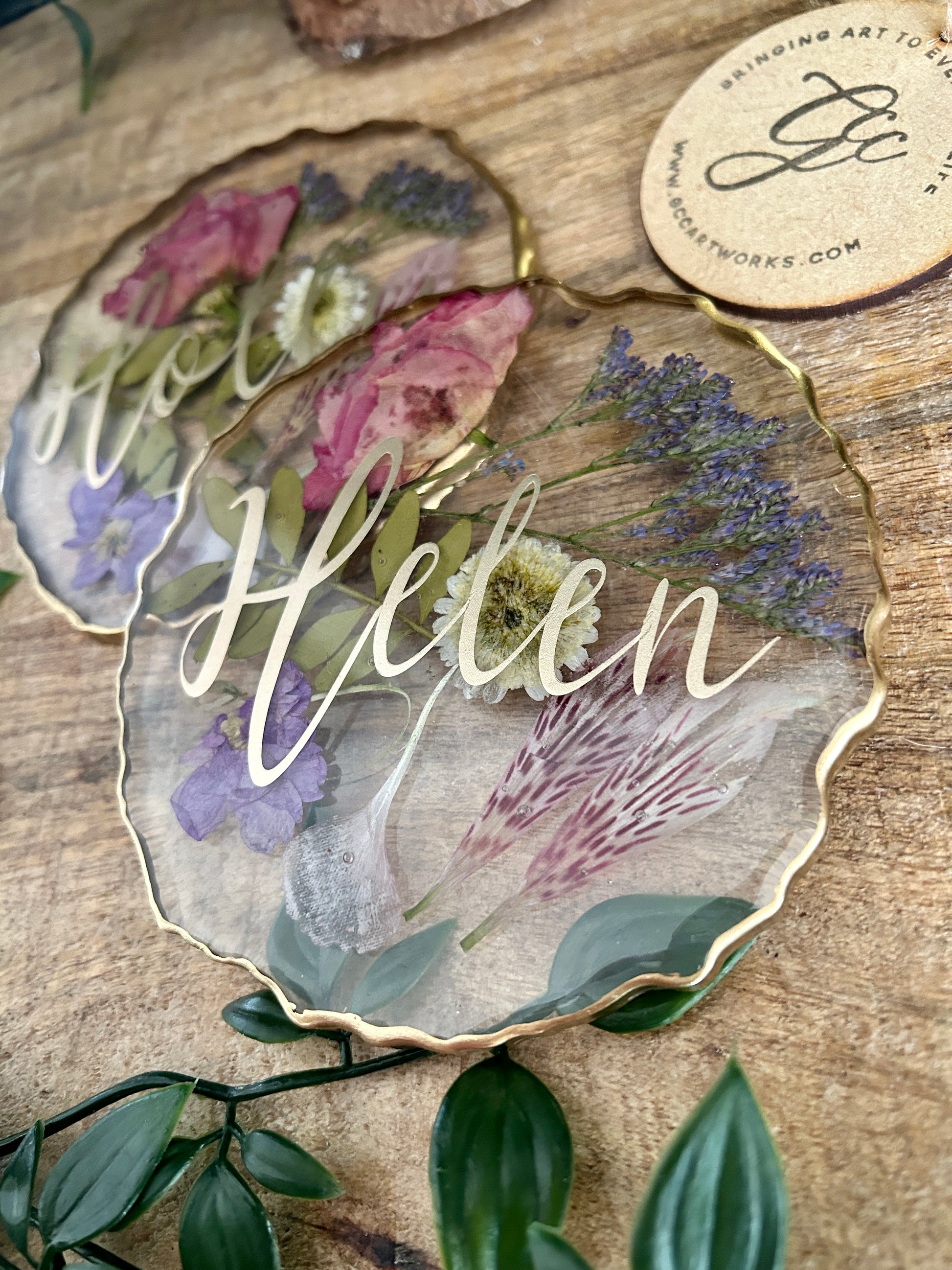 Give the gift of handmade with one of my preserved flower coasters, personalised with any name or word that you like…