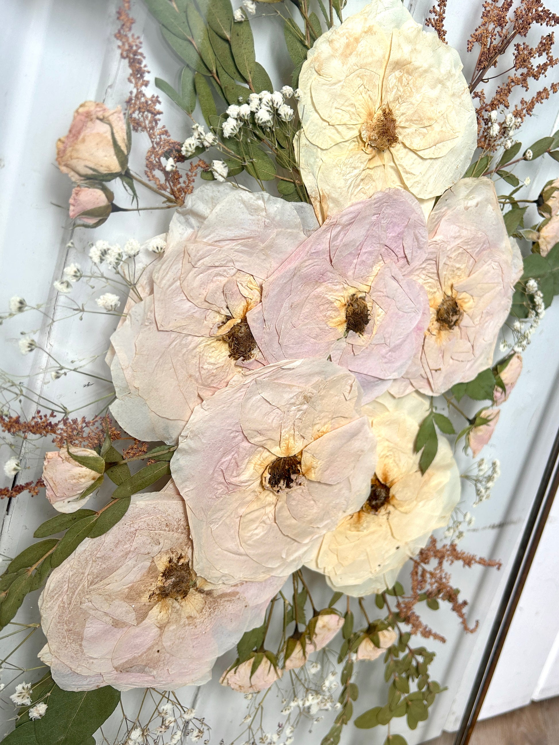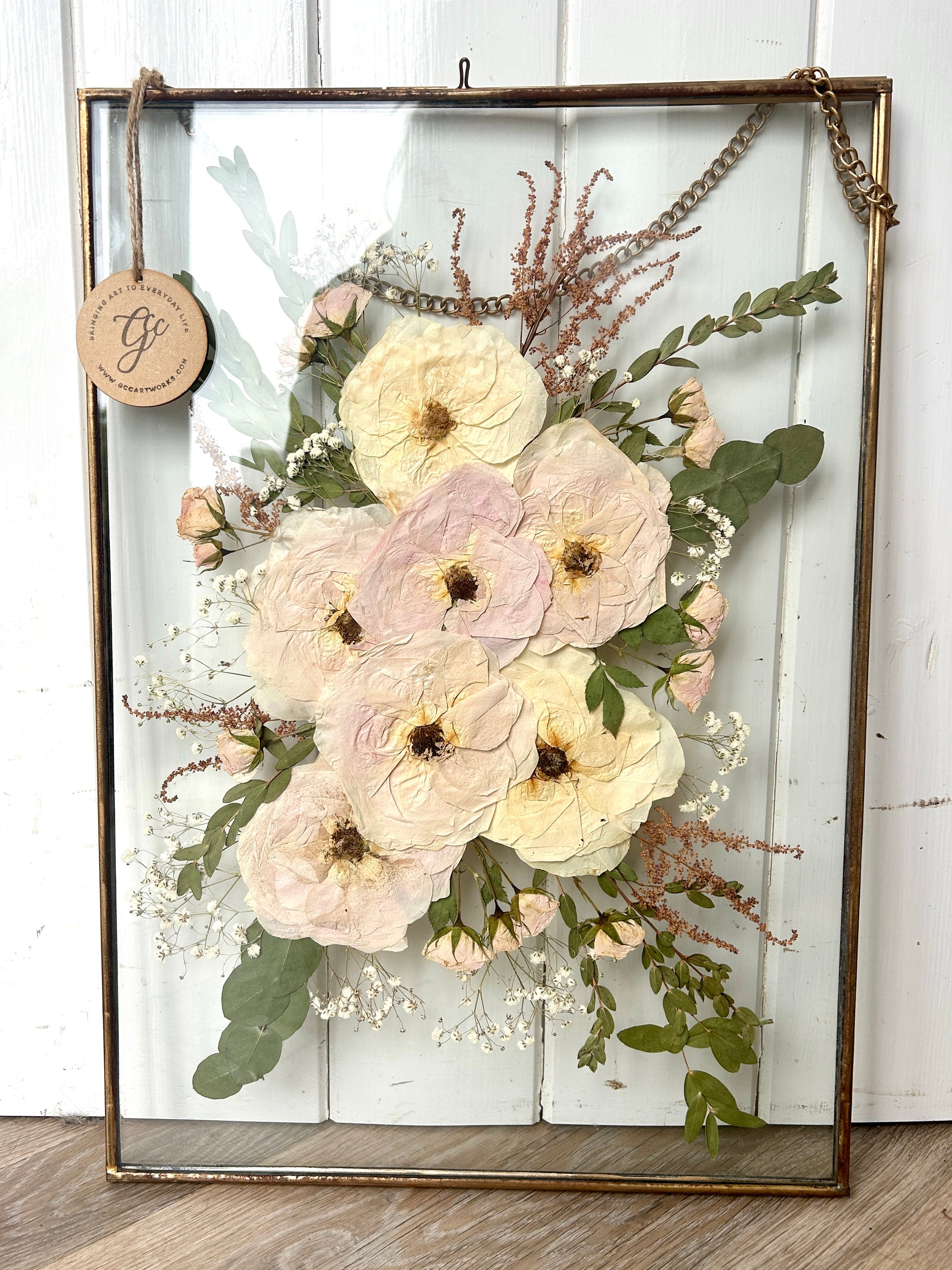 Pressed Wedding Flowers in Hanging Glass Frame