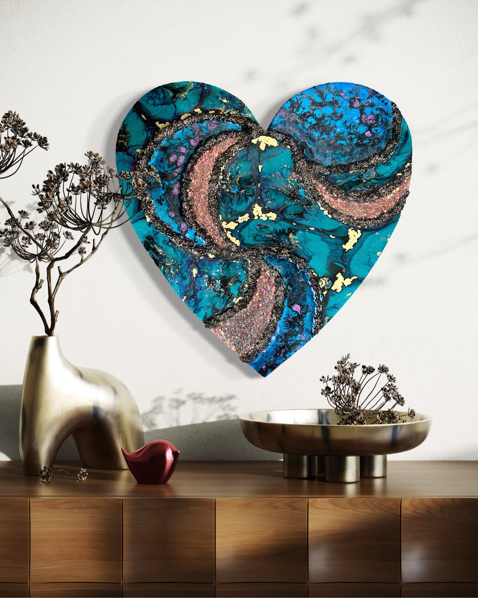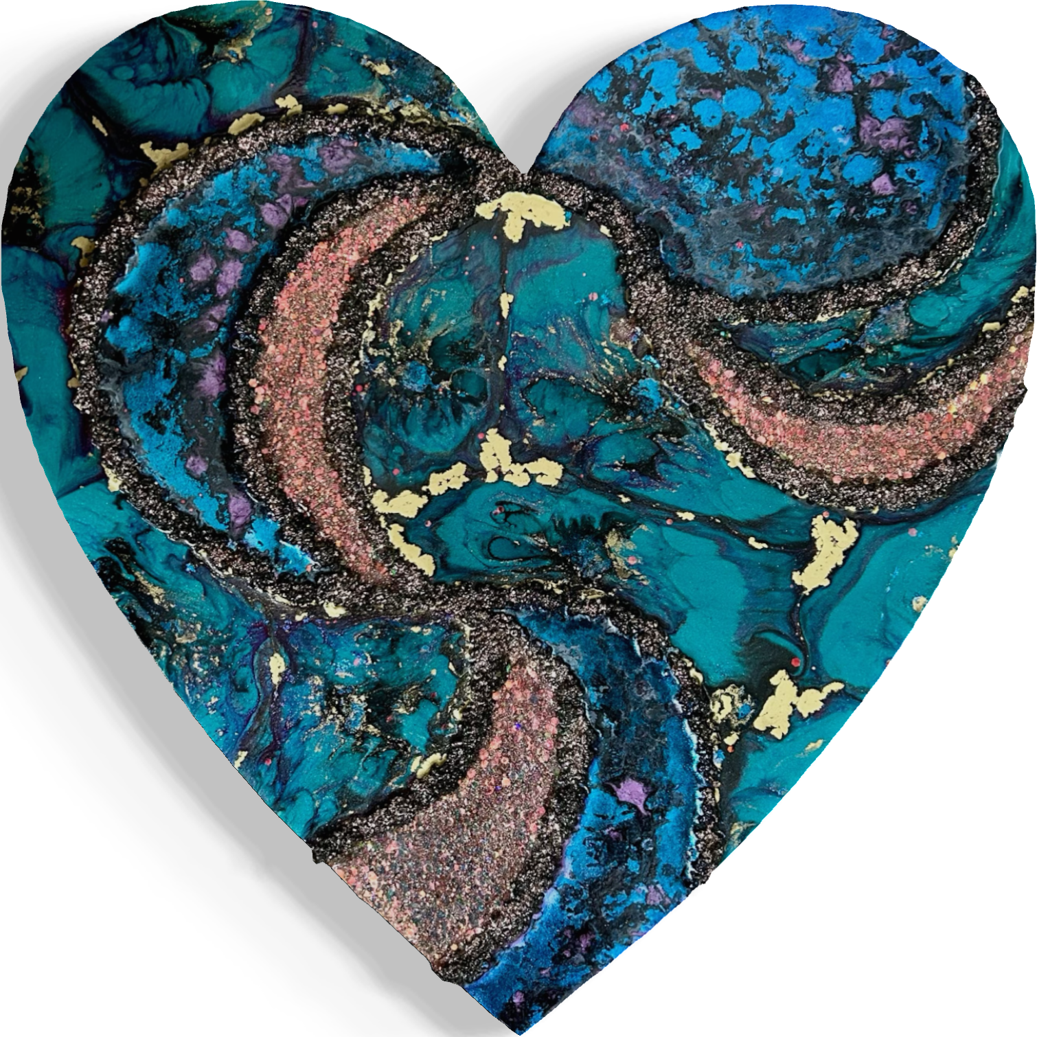 REGAL SEA - Resin and Ink Original Hanging Heart Artwork