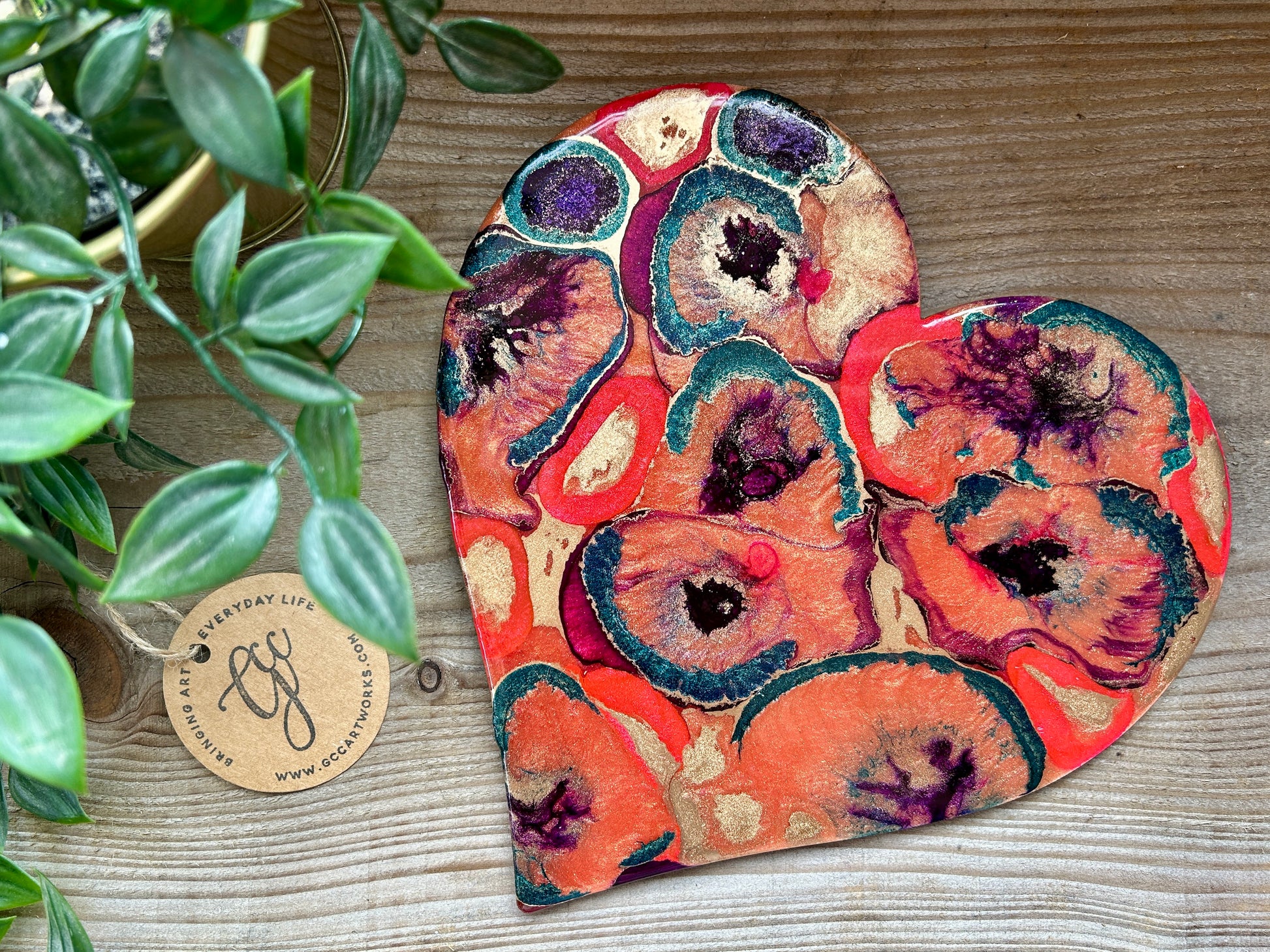 Resin and Alcohol Ink Original Hanging Heart Artwork