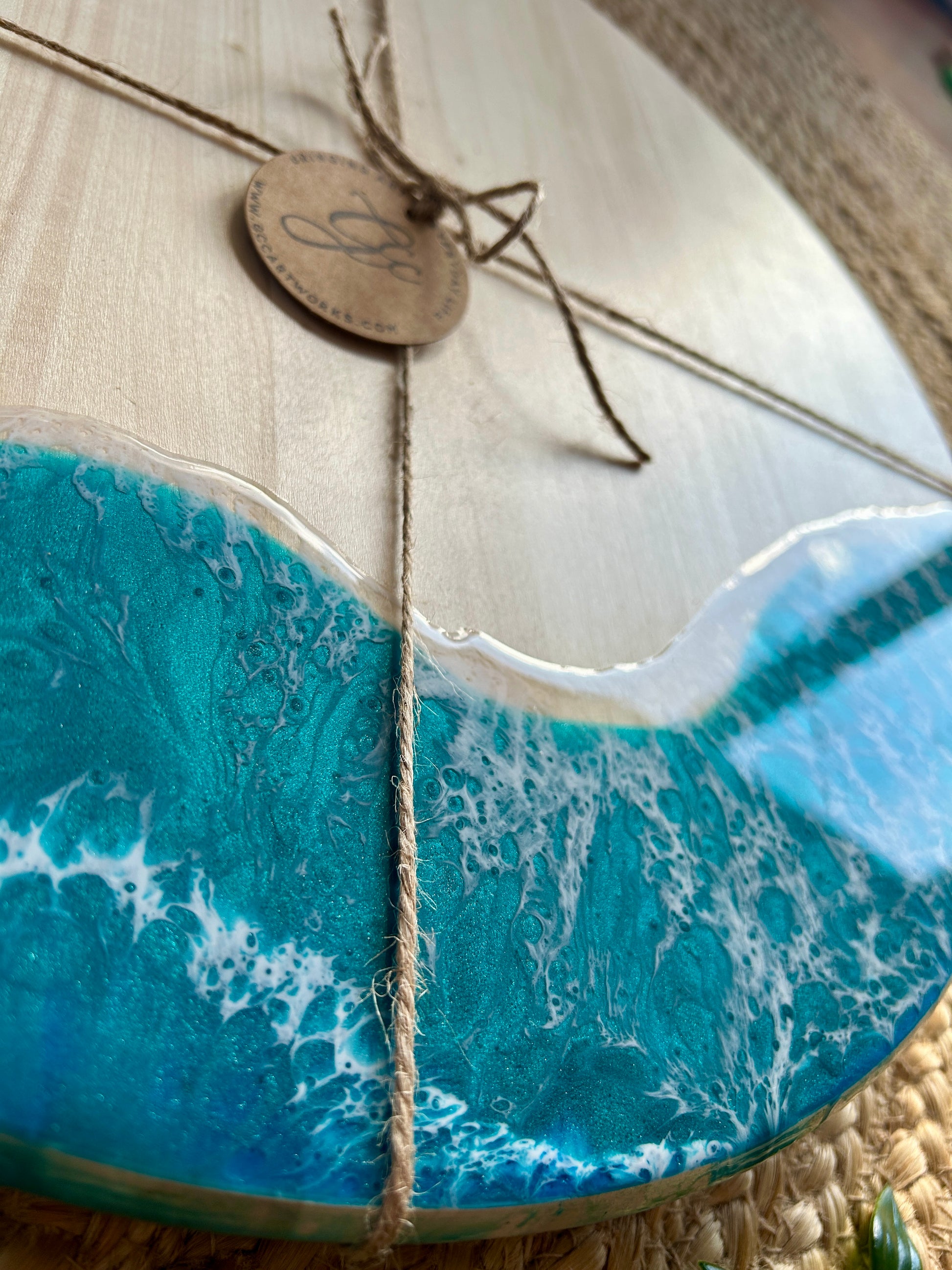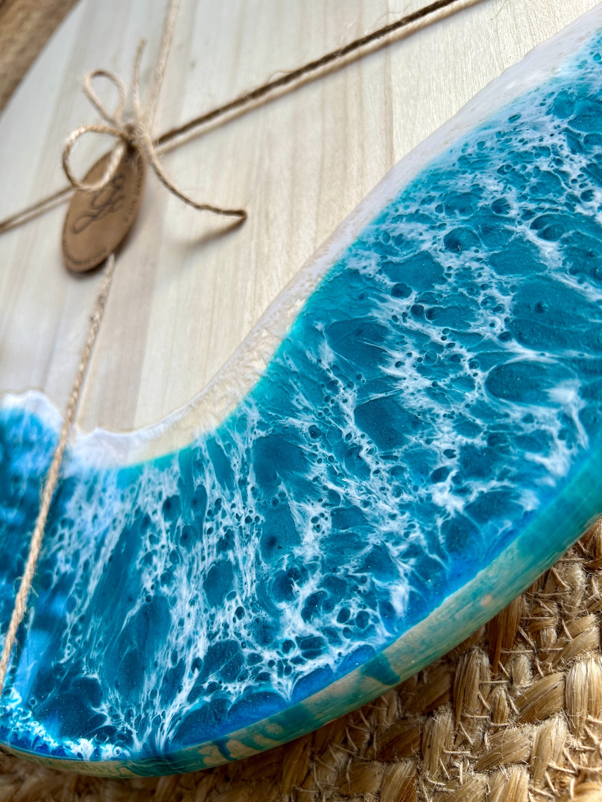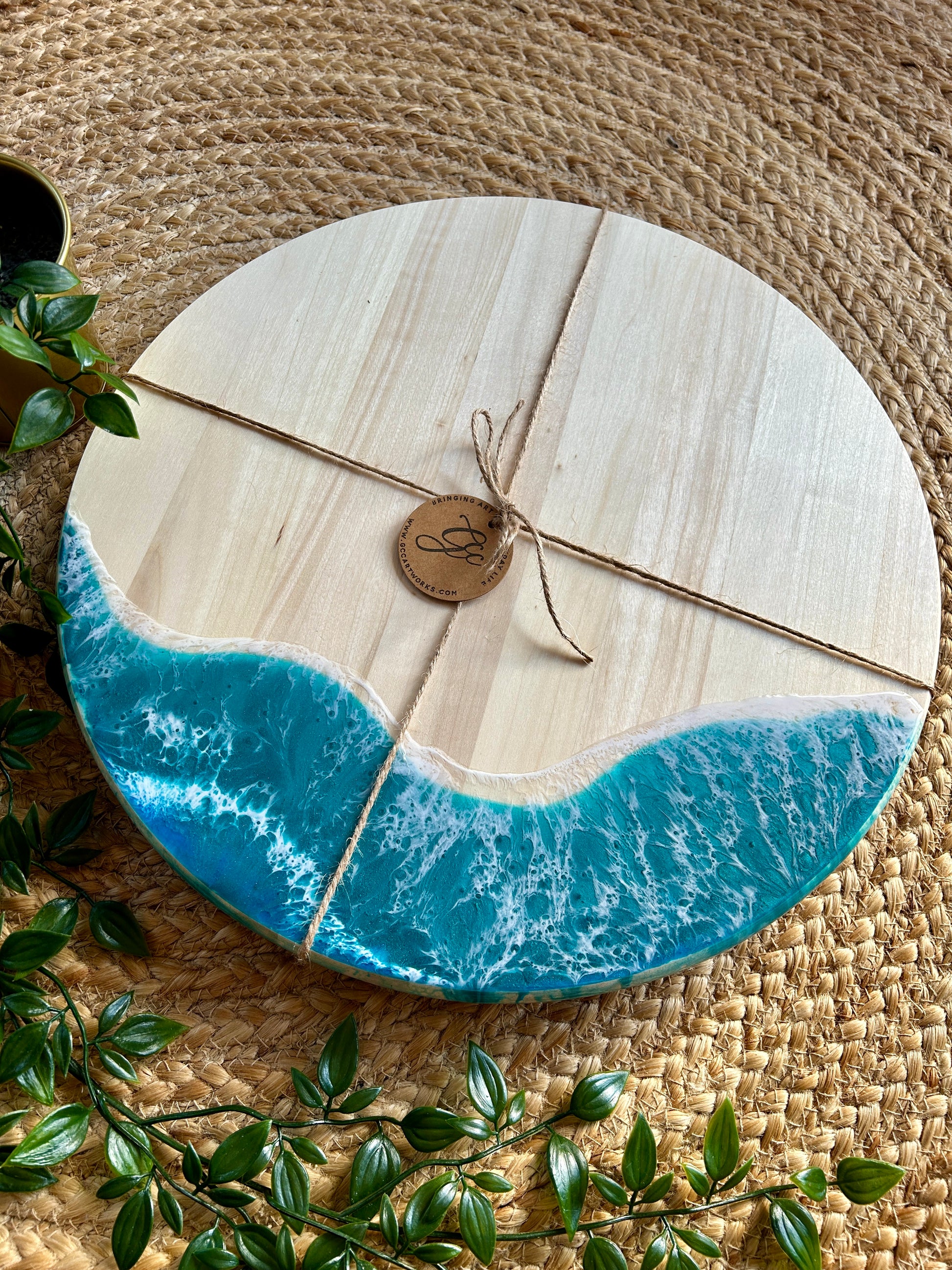 Resin Art Aspen Wood Lazy Susan Serving Board - Beachy Waves