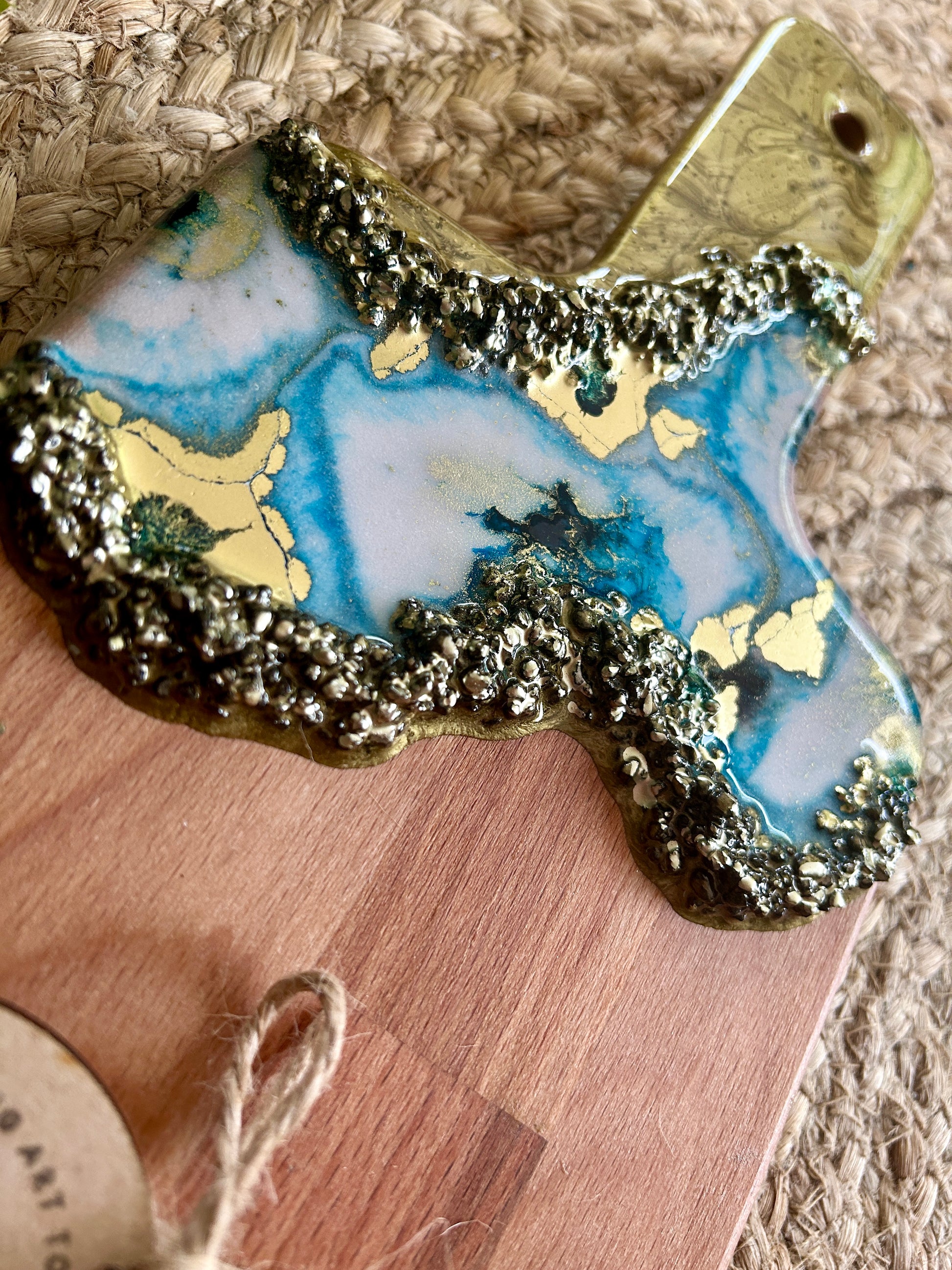 Resin Art Beech Wood Serving Paddle - Blue, White and Gold
