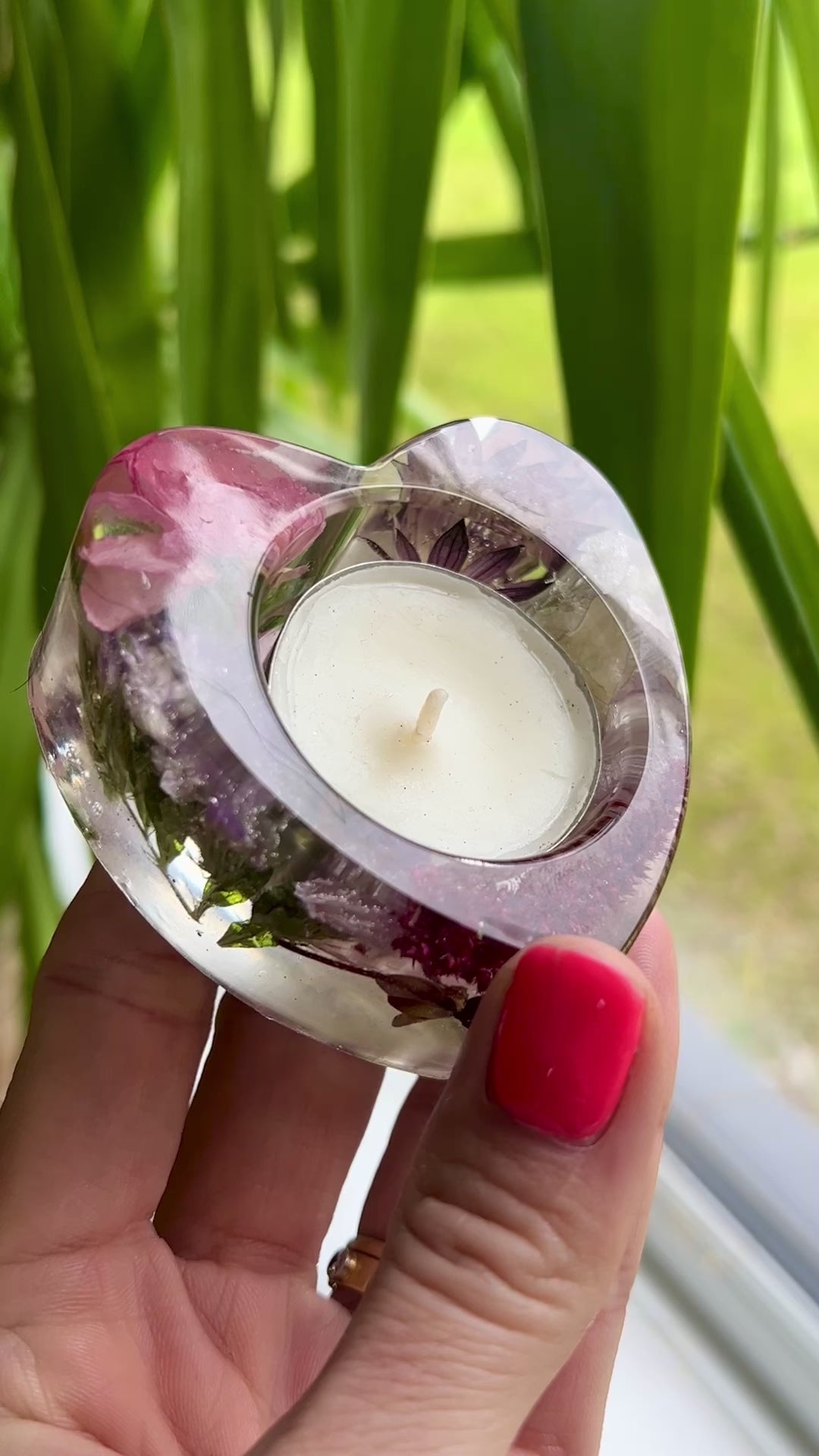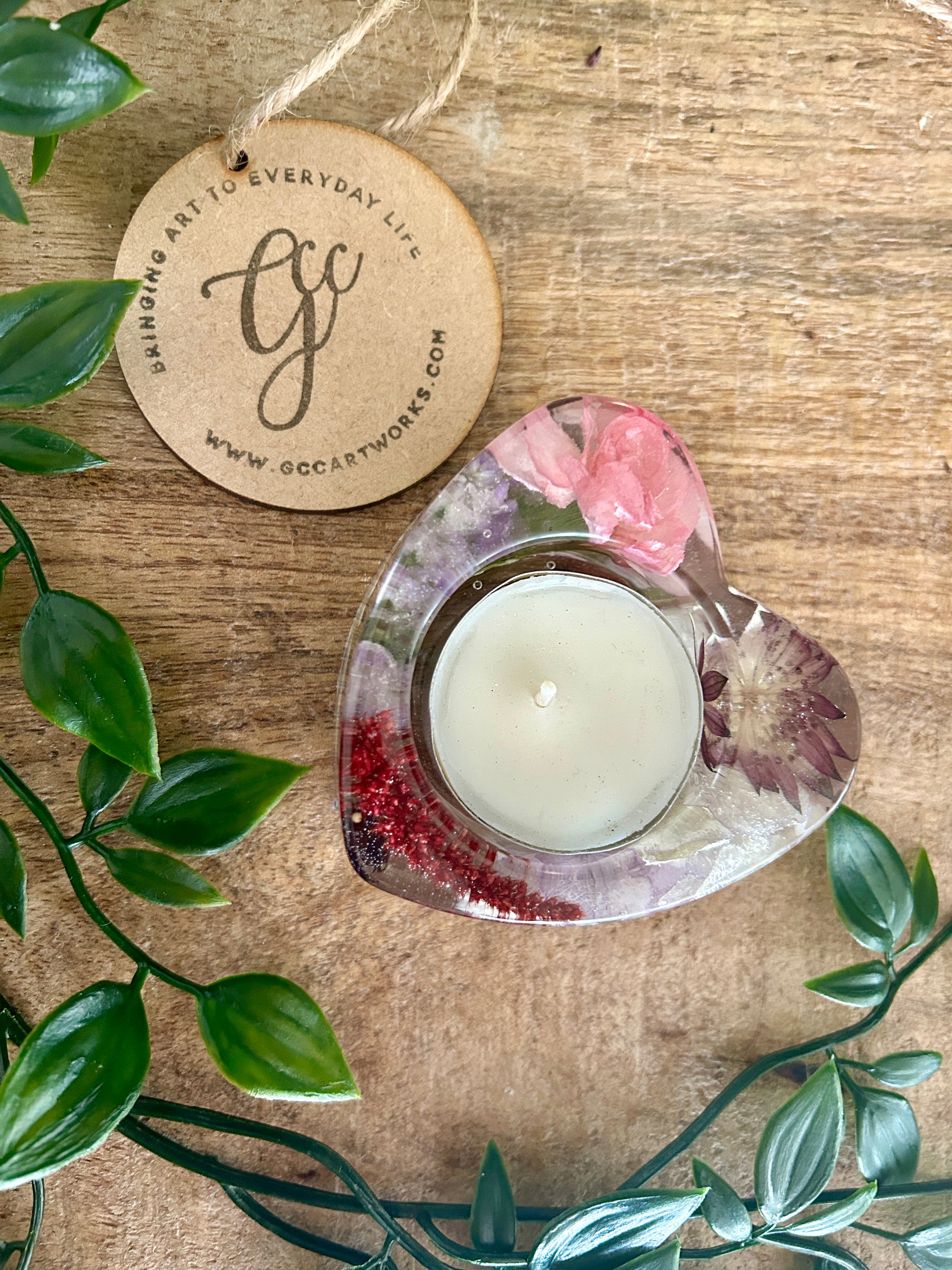 Wedding / Memorial Flowers Preserved in Resin Heart Candleholder
