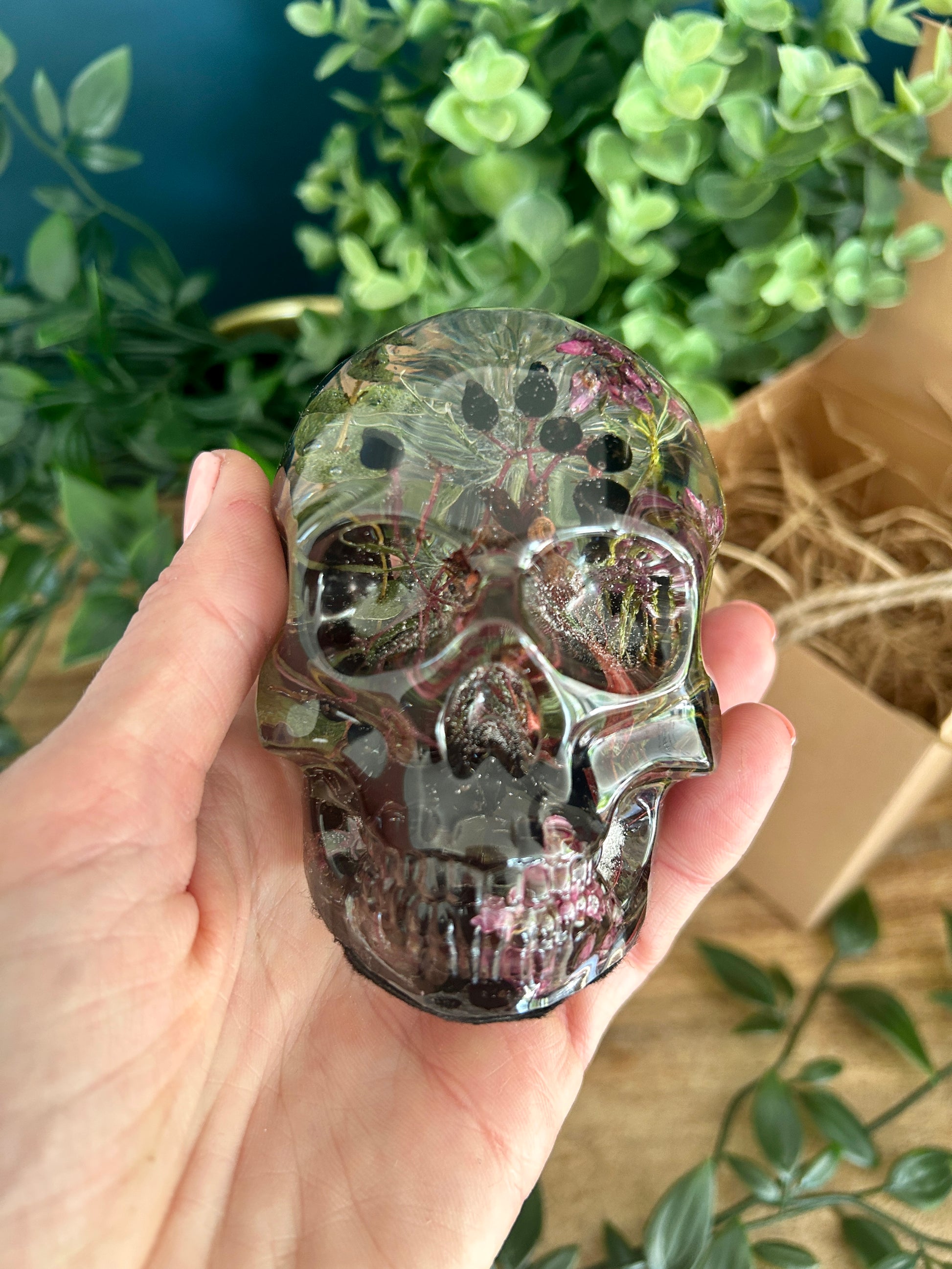 Wedding / Memorial Flowers Preserved in Resin Skull